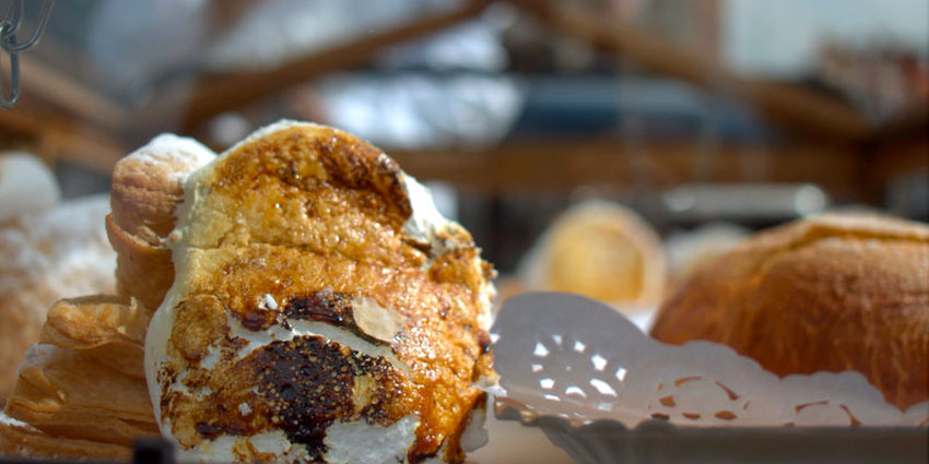 Sacamos el cuerno del frigorífico y con mucho cuidado quitamos el molde y lo rellenamos con el merengue. Lo ponemos en una fuente de horno sobre papel de hornear y lo metemos al horno que debe estar precalentado a 200 grados. Cocemos a temperatura alta durante unos 20 minutos o hasta que veamos que están dorados.